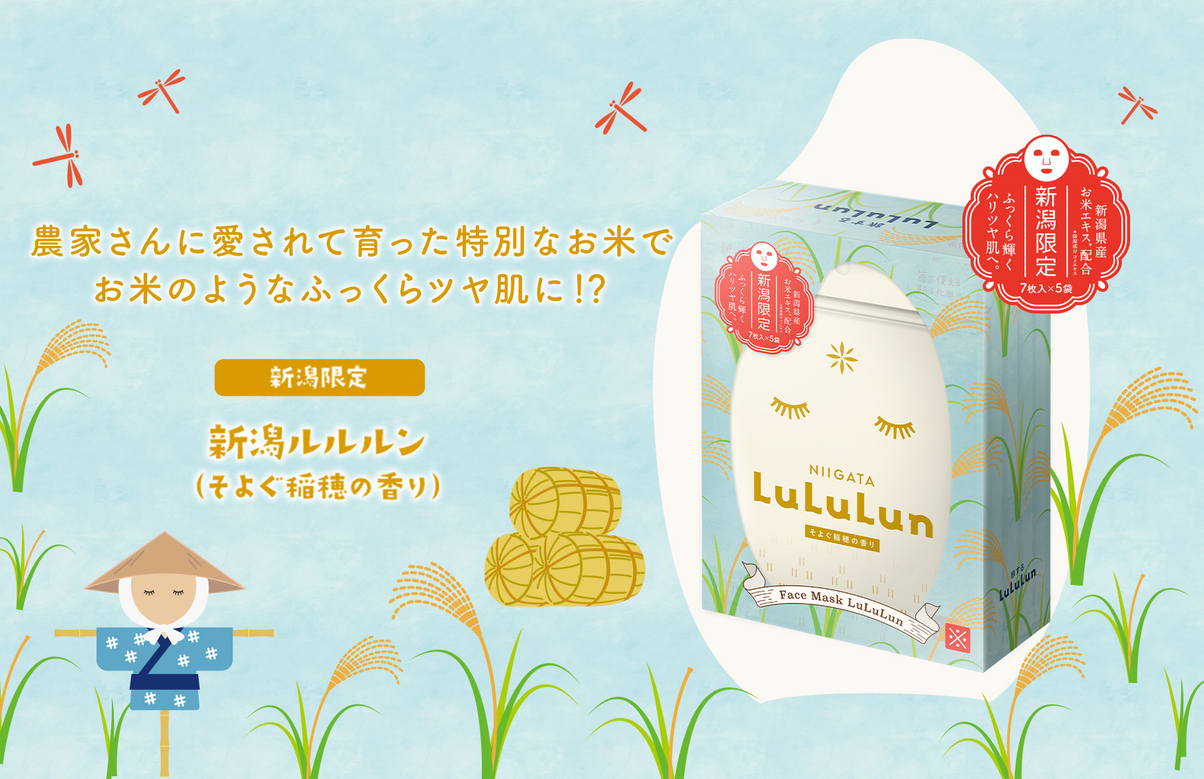 『新潟ルルルン(そよぐ稲穂の香り)』は、お米の恵みがぎゅっと凝縮したフェイスマスクです。